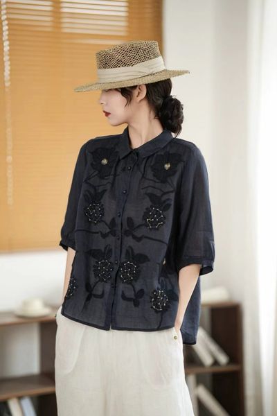 A713-Áo Ramie Thêu Nghệ Thuật Cổ Điển