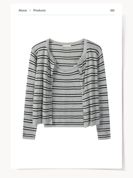 A721-Áo Len Dệt Kim Cardigan Kẻ Sọc Mùa Thu Hàn Quốc
