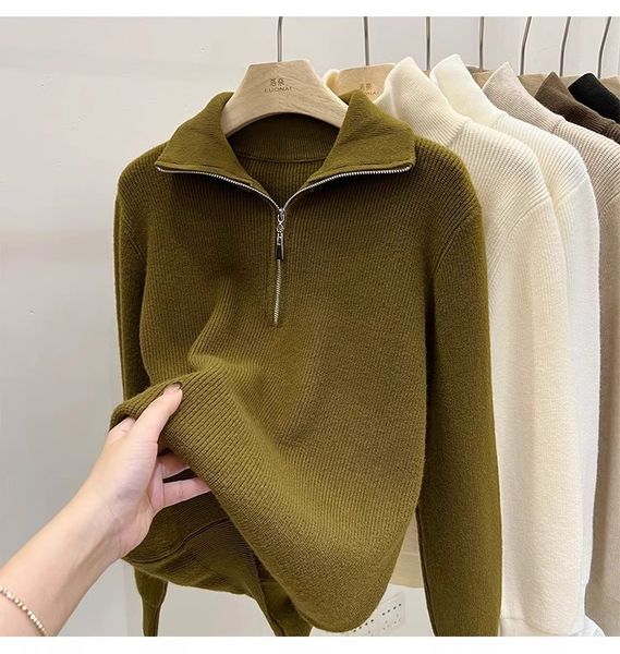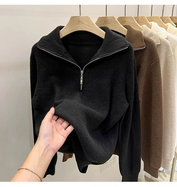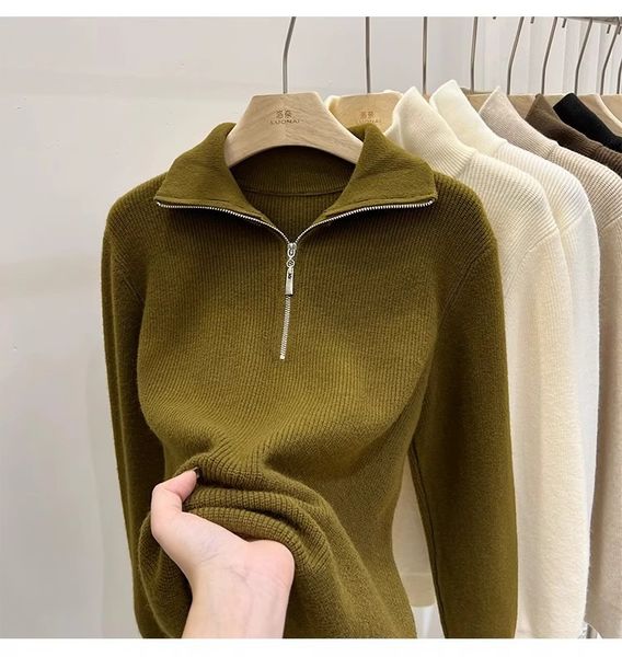 A747-Áo Len Dệt Kim Khóa Kéo Dài Tay Thanh Lịch Mùa Thu