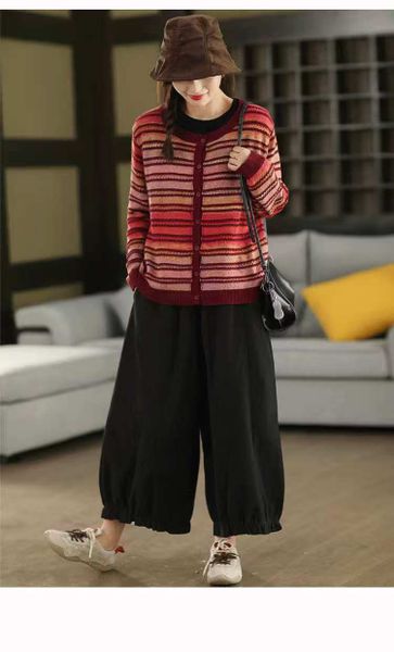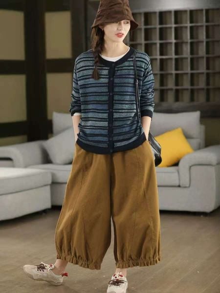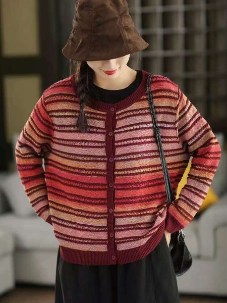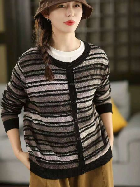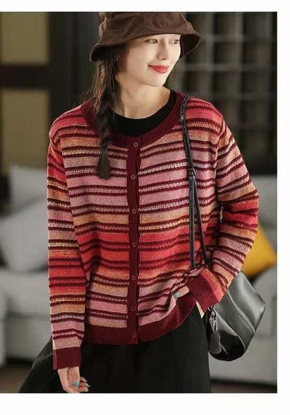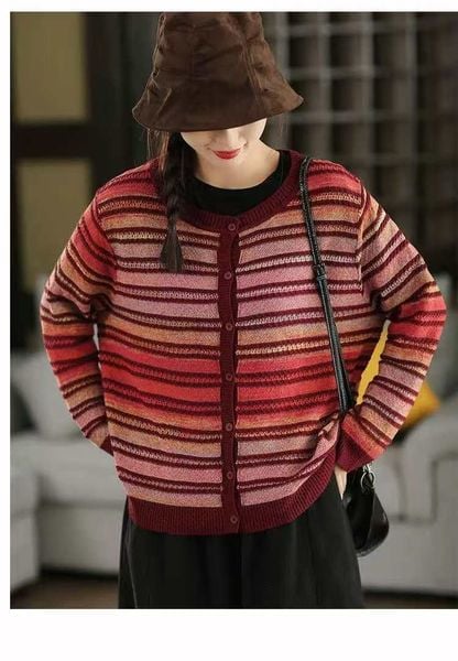 A770-Áo Len Dệt Kim Cardigan Kẻ Sọc Mùa Thu