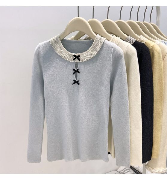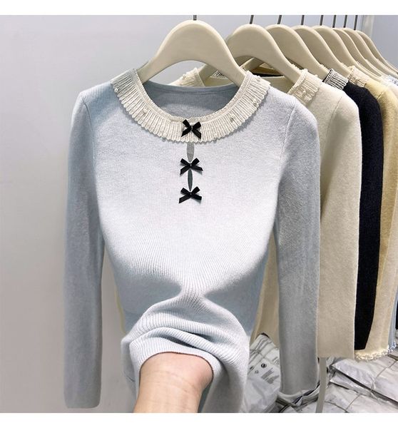 A787-Áo Len Dài Tay Đính Cườm Phối Ren Kiểu Pháp