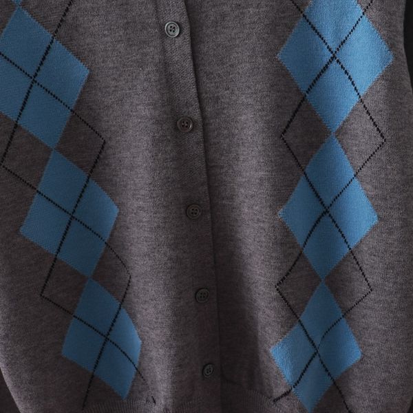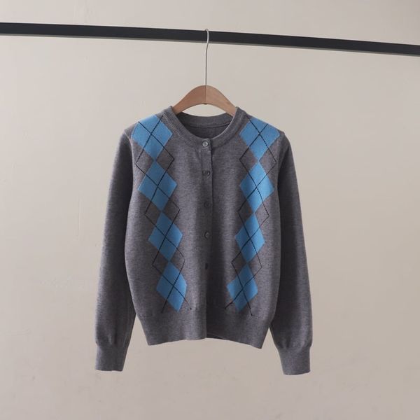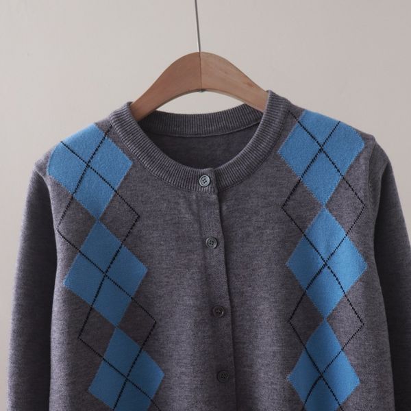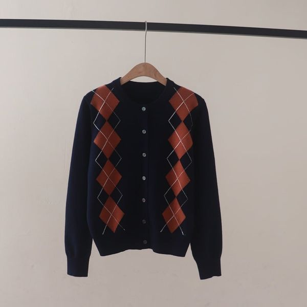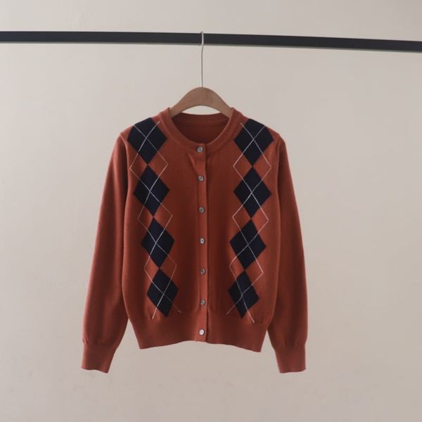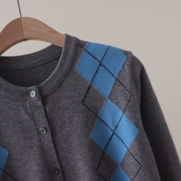 A792-Áo Len Dài Tay Họa Tiết Hình Thoi Mùa Thu