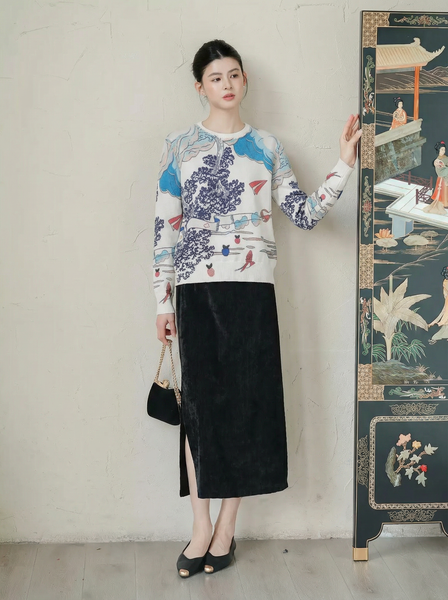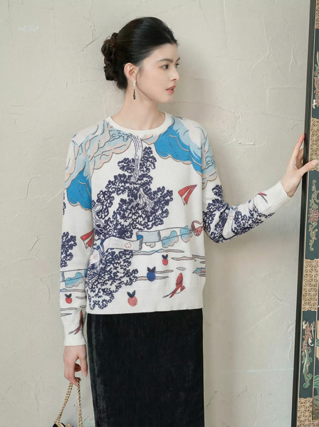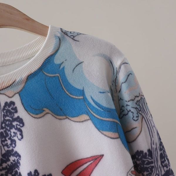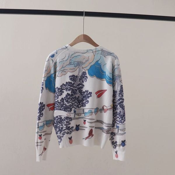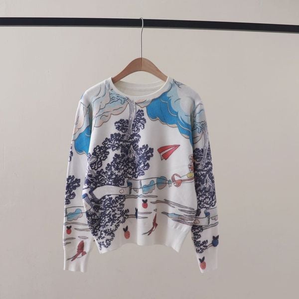 A821-Áo Len Dệt Kim Trừu Tượng Hoạt Họa Mùa Thu