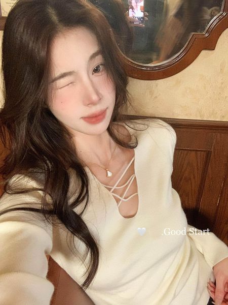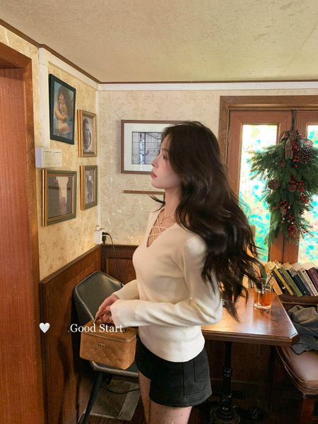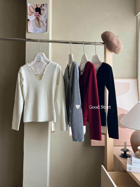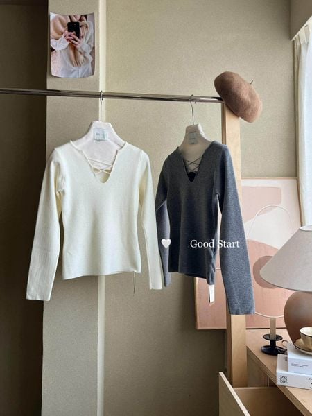 A825-Áo Len Cổ V Dáng Suông Quyến Rũ Mùa Thu