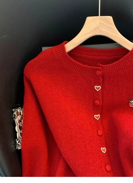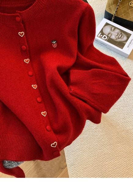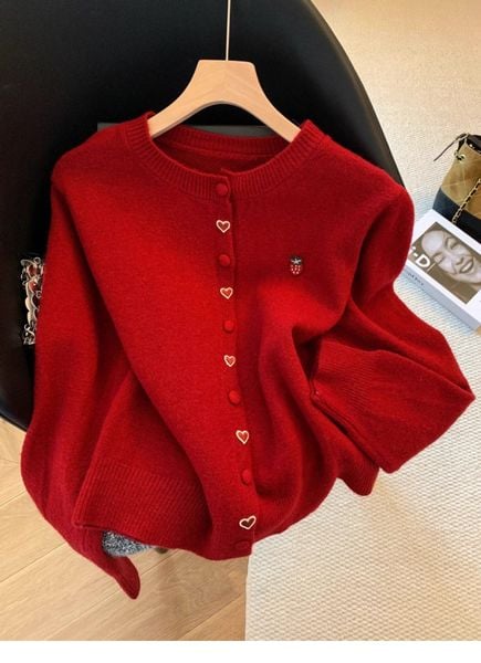 A829-Áo Len Cardigan Nút Trái Tim Mùa Thu