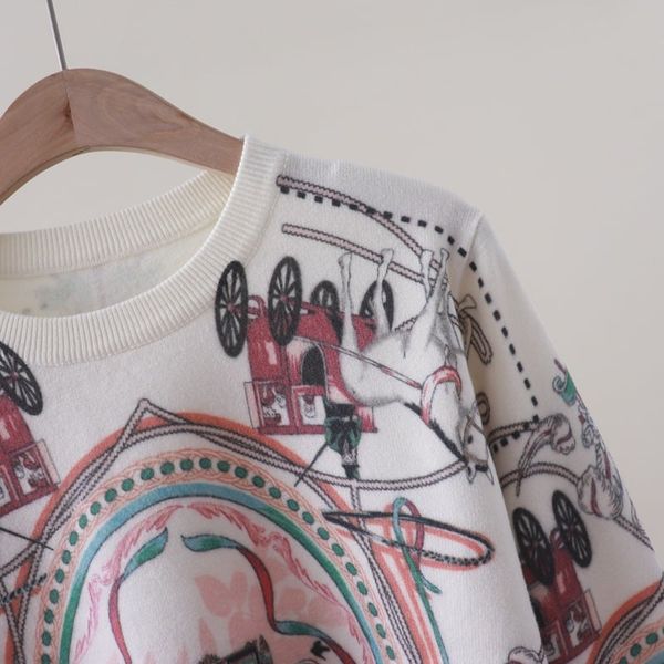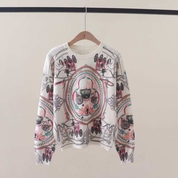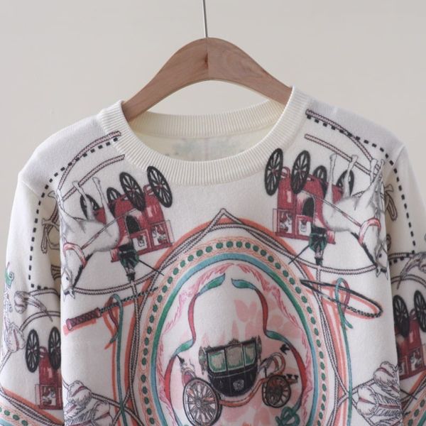 A843 Áo Len Dệt Kim in hình xe ngựa