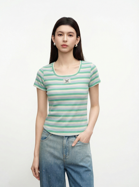 AT35-Áo Thun Gân Lụa Mịn Cổ Vuông