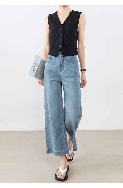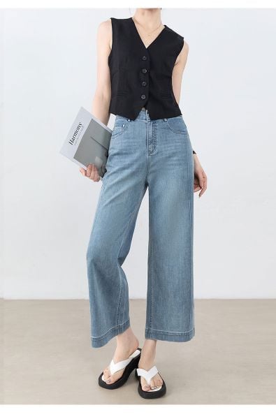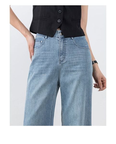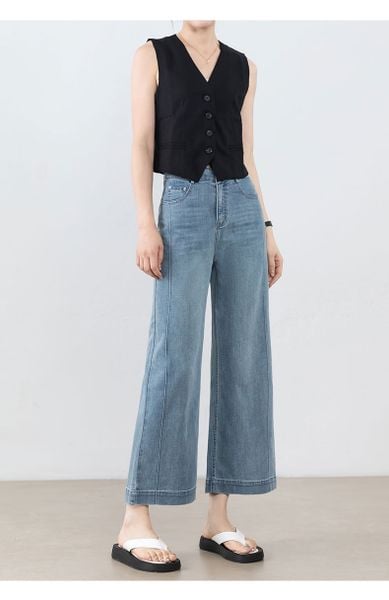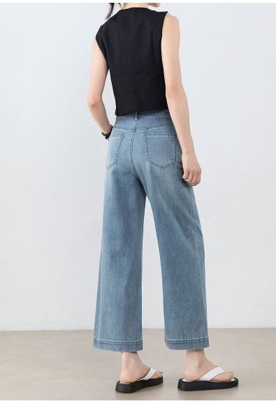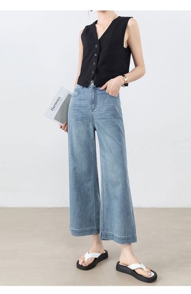 Q325-Quần Jeans Lụa Mềm Ống Suông Loe 9 Tấc