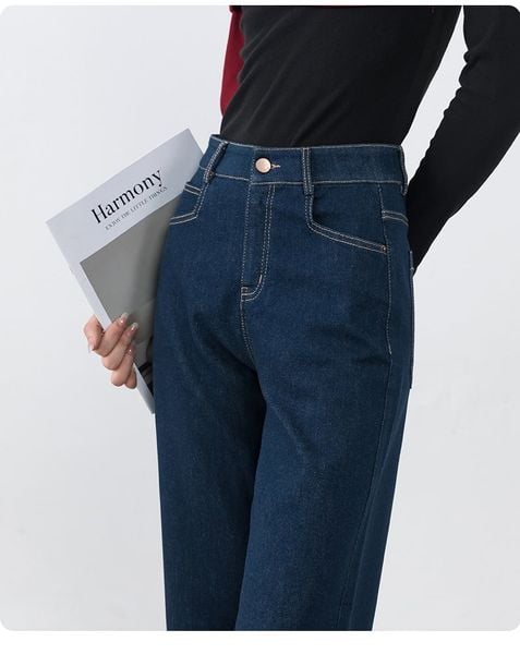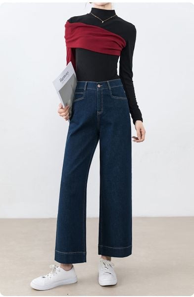 Q347-Quần Jeans Lụa Mềm Ống Đứng Lai Cao