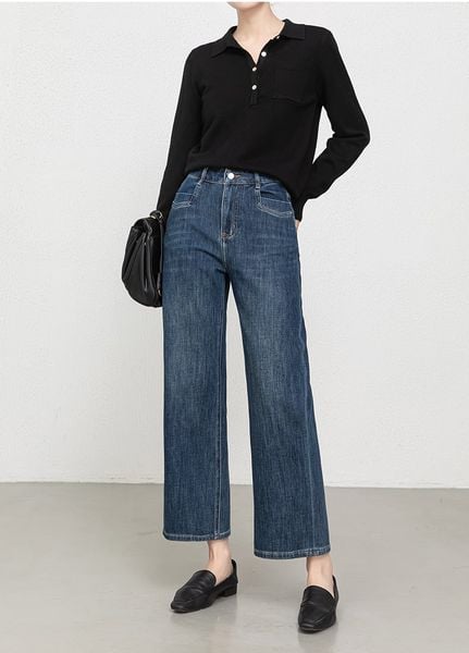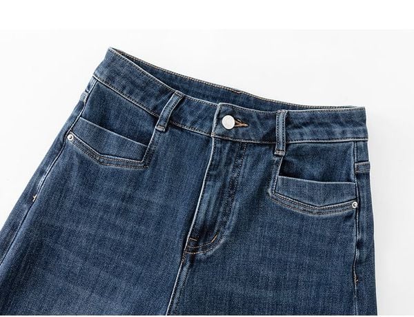 Q373-Quần Jeans Ống Suông Co Dãn 4 Chiều Túi Kiểu Nghệ Thuật 9 Tấc